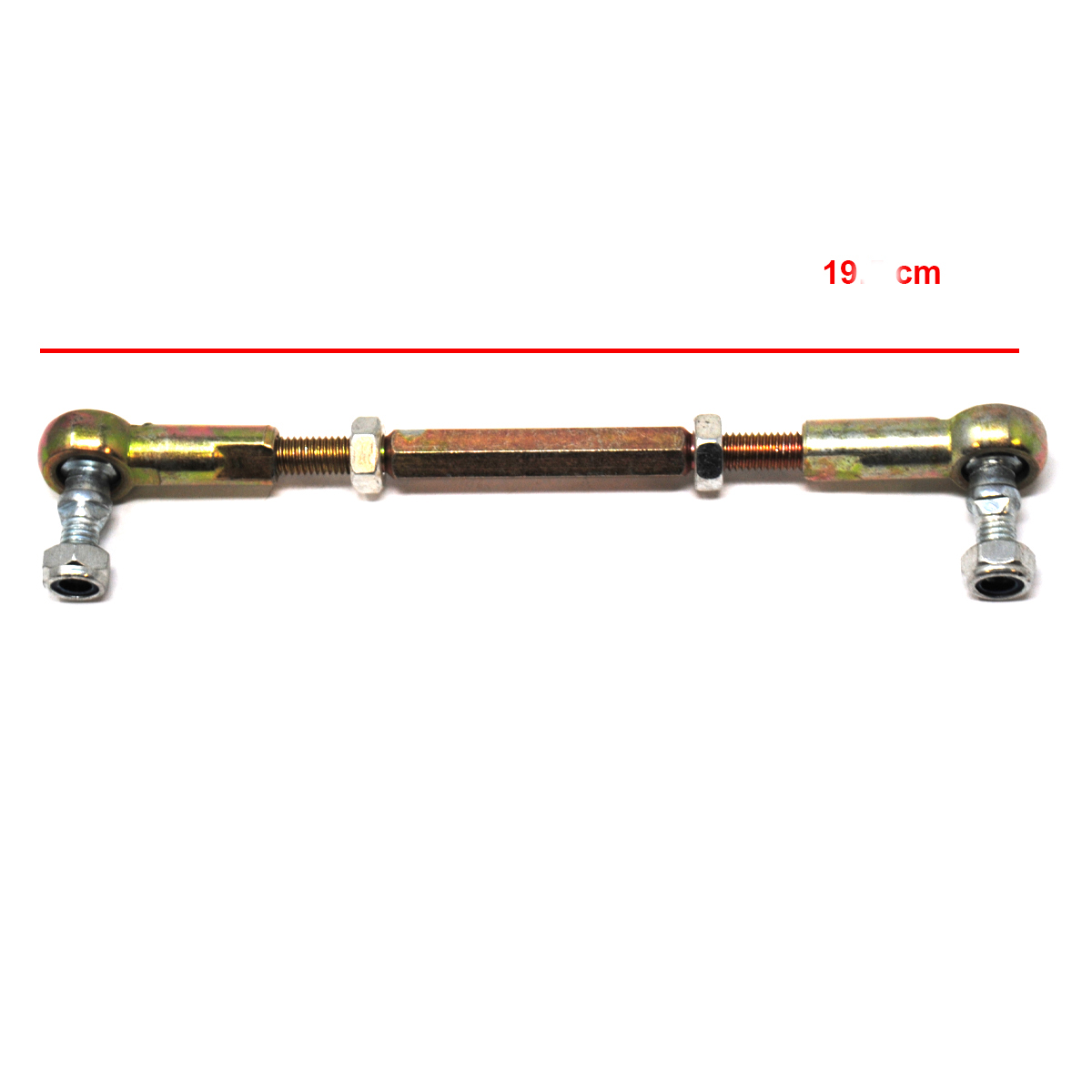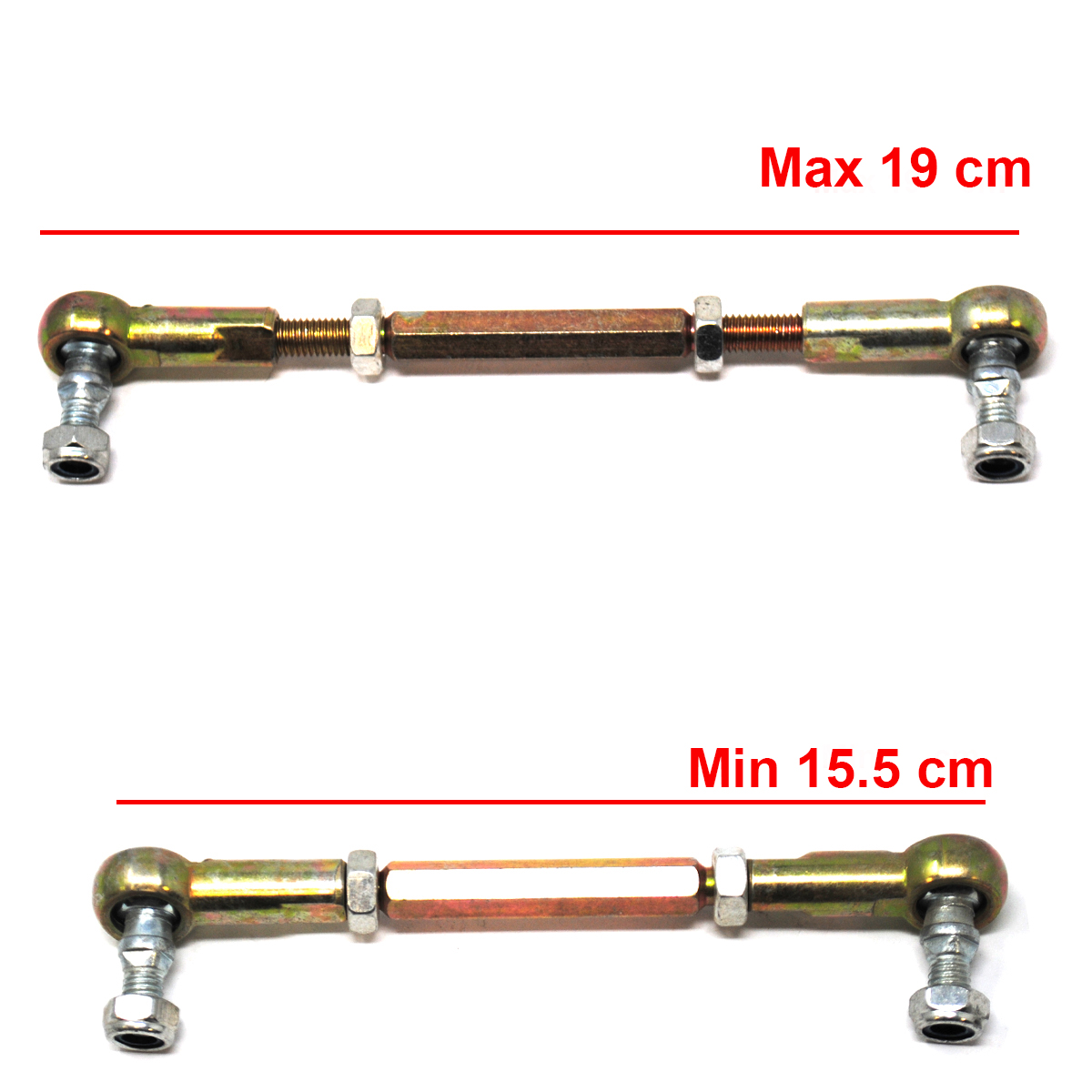 Questo braccetto sterzo anteriore è un ricambio essenziale per mini quad con motore 49cc 2 tempi. Dotato di testine snodate, permette di regolare la lunghezza da 18cm a 19.7cm.